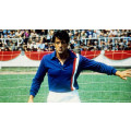 Maillot bleu de gardien de but du film de 1981, À nous la victoire porté, par Sylvester Stallone. C'est l'un des maillots utilisé par l'équipe de prisonniers alliés lors du match joué contre une représentation de soldats allemands dans le fameux film de John Houston. Stallone joue le rôle de Hatch, un prisonnier qui fuit pour se faire capturer et ainsi communiquer le plan d'évasion à ses compagnons. Dans le terrain de jeu, avec un nul 4-4, Hatch arrête un penalty de Bauman, ce qui rend le public du stade fou de joie et c'est cette situation chaotique qui sauve l'équipe. Réplique parfaite de ce maillot de la filmographie, 100% coton qui appartient déjà à l'histoire du cinéma de football des années 80.