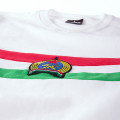 Maillot vintage blanc avec des rayures horizontales vertes et rouges, 100 % coton et réplique très fidèle à l'originale. Un classique de notre boutique de maillots historiques.