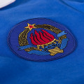 Maillot rétro de l'équipe de la Yougoslavie des années 80, qui représente une décennie au cours de laquelle ont débuté des joueurs historiques des années 90 tels que Savicevic, Suker, Jarni, Prosinecki et Boban. Cette génération a gagné en finale contre l'Allemagne la Coupe du Monde junior de 1987 au Chili, dans la série de penaltys (5-4). Mais retournons à la performance des joueurs les plus âgés; la Yougoslavie a été éliminée dès le premier tour de la Coupe du Monde de 1982. Voyons la séquence; match nul sans buts contre l'Irlande du Nord, suivi de la défaite 2-1 face à l'Espagne (buts de Juanito, Saura et Gudeli) et finalement, bien qu' inutile, victoire contre le Honduras grâce au penalty de Petrovic. Par la suite, pas beaucoup d'événements à retenir jusqu'à l'arrivée de la génération des années 90, qui a très bien travaillé à la Coupe du Monde d'Italie. Les premiers pas à San Siro contre l'Allemagne, 1-4, ont été plutôt très décevants (2 buts de Matthaus puis Klinsmann et Voller, en plus du but de Jozic); ensuite il y a eu une importante victoire contre la Colombie de Valderrama, avec un but de nouveau de Jozic, pour finalement dans le dernier match du premier tour, s'assurer la classification des balkaniques en gagnant les Émirats Arabes Unis 4-1 (Susic, doublé de Pancev et Prosinecki). En huitièmes de finale, à Vérone, Yougaslavie - Espagne 2-1 avec doublé de Stojkovic (magistral le serbe) et but de Salinas. Ce grand élan a été du coup arrêté lors des quarts de finale contre l'Argentine de Maradona, mais il faut bien souligner, seulement aux penaltys, et à cause des erreurs de Stojkovic, Brnovic et Hadžibegić.