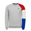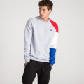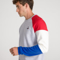SWEAT TRICOLORE. Sweat à manches longues avec une coupe regular / classique et manches raglan. Une tenue caressante et très confortable à porter en coton 85% de haute qualité 300 gr et polyester 15%. Le logo du Coq est brodé sur la poitrine. Article tricoté et teint en France et confectionné au Maroc.