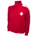 Veste vintage avec le drapeau de la Suisse, de couleur rouge à croix blanche, avant le changement de 2007 de l'écusson de l'équipe de football suisse. Les meilleurs résultats dans l'histoire du football de l'équipe qui nous occupe sont les diverses qualifications pour les quarts de finale des Coupes du Monde de 1934, 1938 et de 1954. Veste pour homme, aussi bien pour se promener et profiter du temps libre que pour pratiquer le sport.